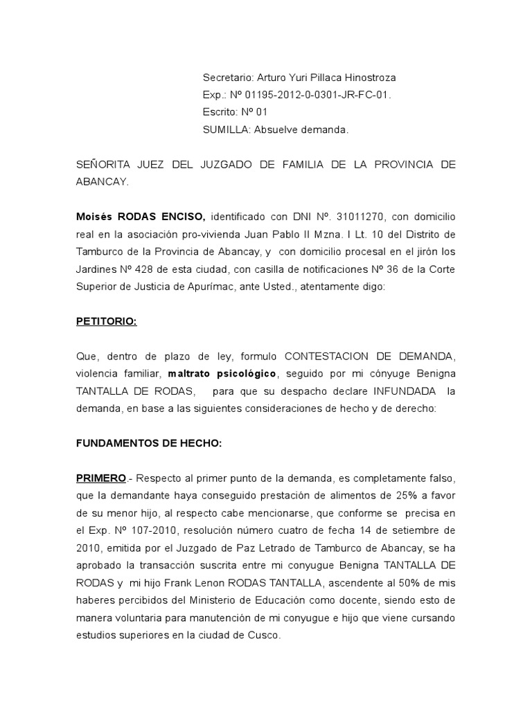 Contestacion de La Demanda Violencia Familiar PDF Gobierno Instituciones sociales