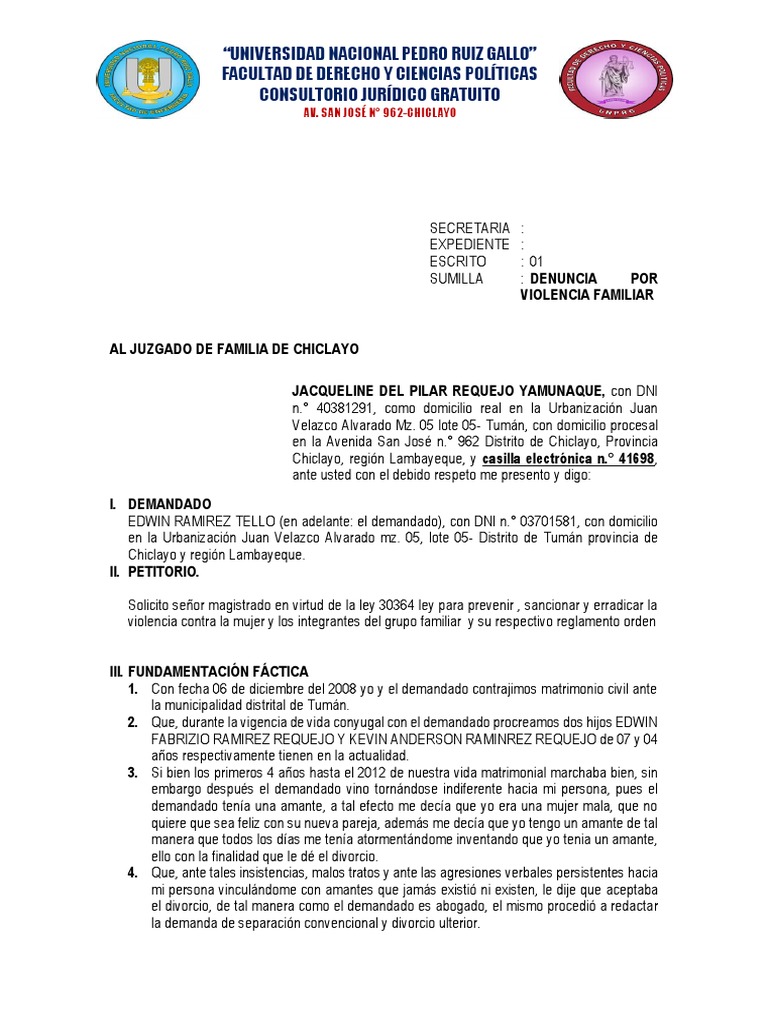 modelo de demanda Por Violencia Familiar Violencia contra las mujeres Divorcio