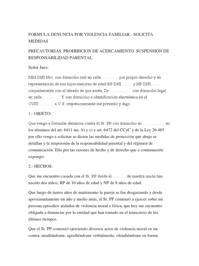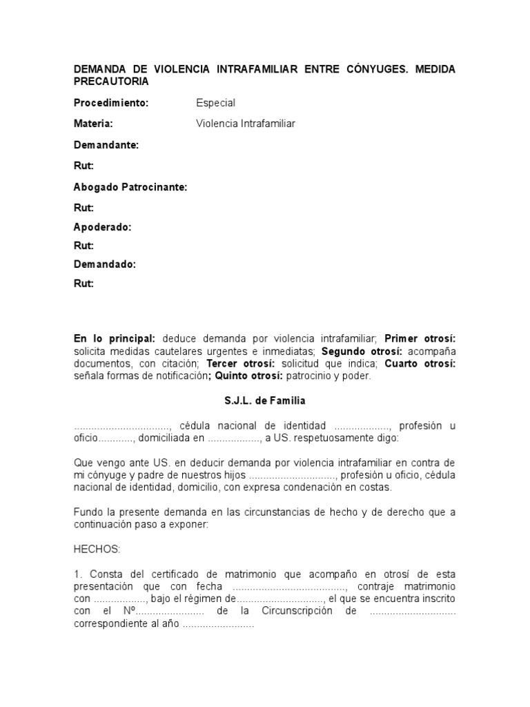 Modelo de demanda de violencia familiar Violencia doméstica Demanda judicial