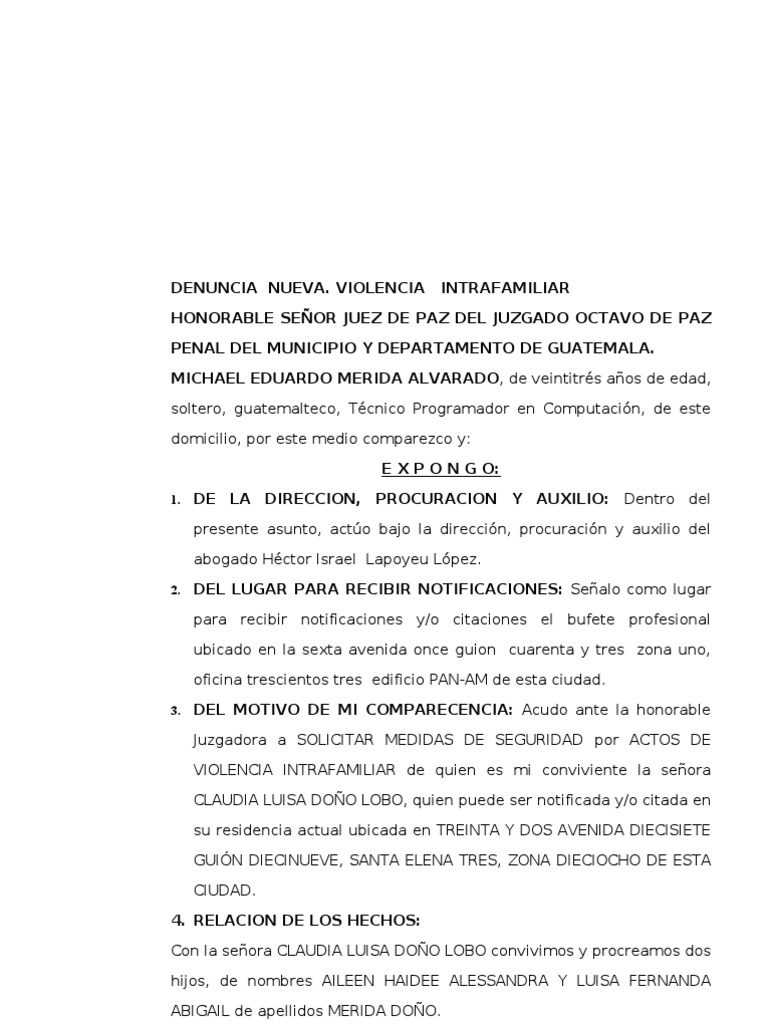 Denuncia de Violencia Intrafamiliar Masculino y Solicitud de Medidas de Seguridad Guatemala