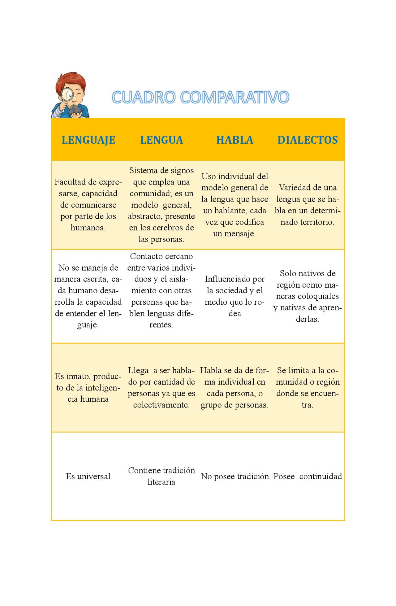 Cuadro Comparativo CUADRO COMPARATIVO SOBRE EL LENGUAJE LENGUAJE LENGUA HABLADIALECTO Studocu