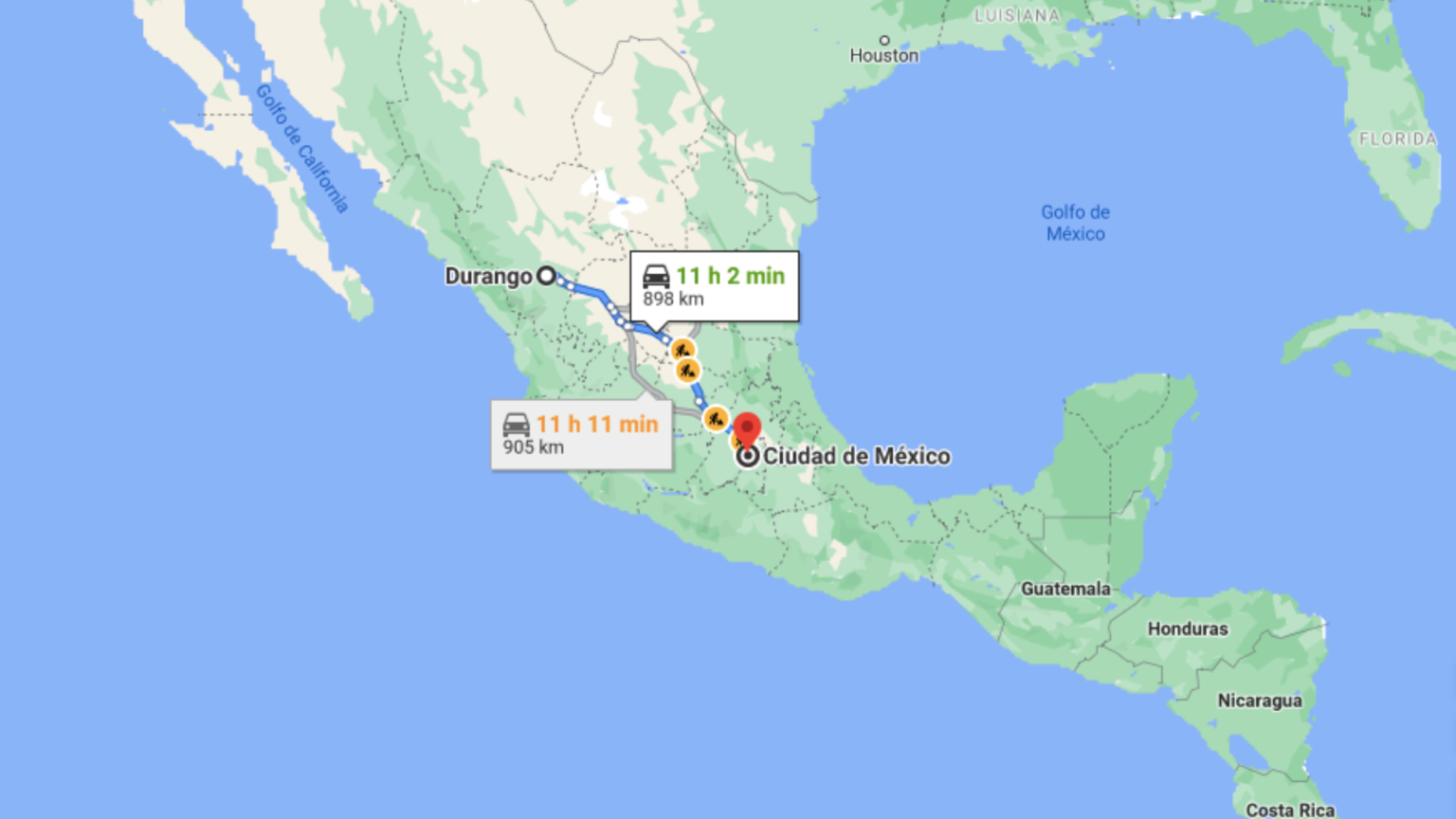 Victoria de Durango » Mexico City (México) Distancia, recorrido, kilómetros