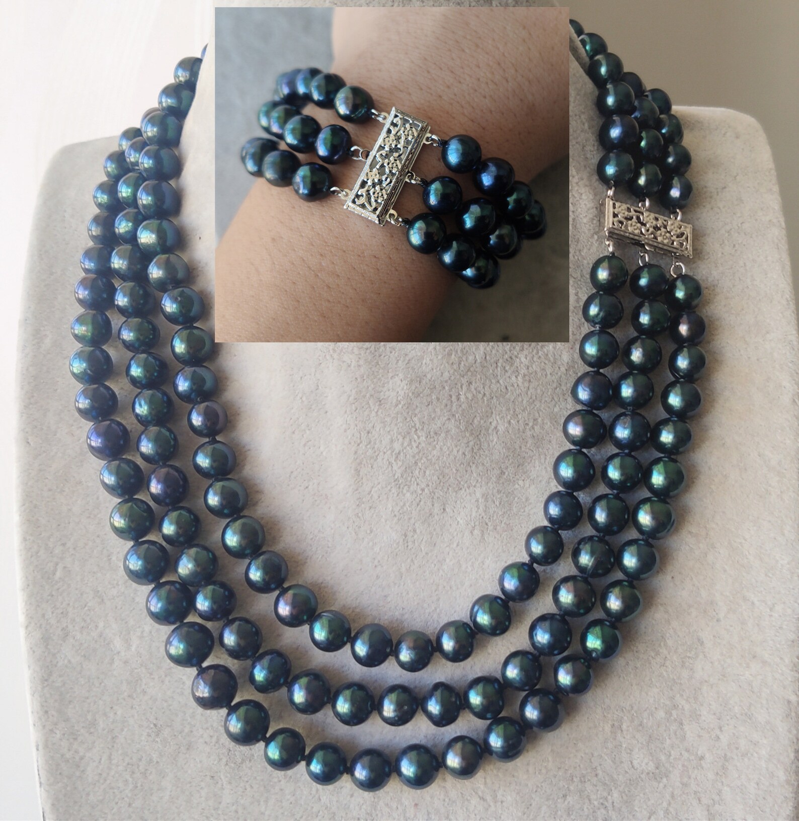 Conjunto de perlas negras cultivadas 99.5mm negro de agua Etsy