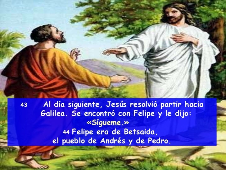 Juan 1:35-37. Reina-Valera 1960. Los primeros discípulos. 35 El siguiente día otra vez estaba Juan, y dos de sus discípulos. 36 Y mirando a Jesús que andaba por allí, dijo: He aquí el Cordero de Dios. 37 Le oyeron hablar los dos discípulos, y siguieron a Jesús. Read full chapter.