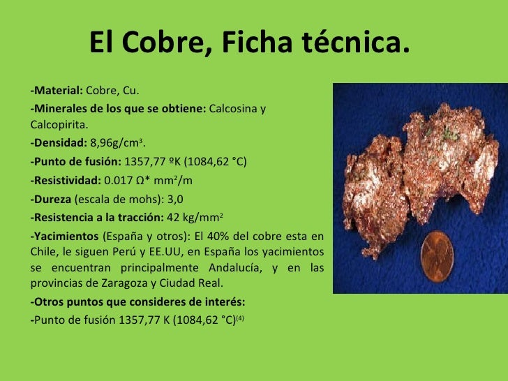 El cobre (del latín cuprum, y este del griego kypros, Chipre ), 5 cuyo símbolo es Cu, es el elemento químico de número atómico 29. Se trata de un metal de transición de color cobrizo, es decir, rojizo anaranjado, de brillo metálico que, junto con la plata, el oro y el roentgenio, forma parte de la llamada familia del cobre.