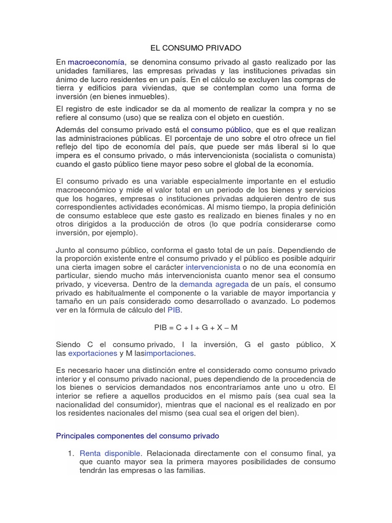 El Consumo Privado PDF Consumo (economía) Ahorro