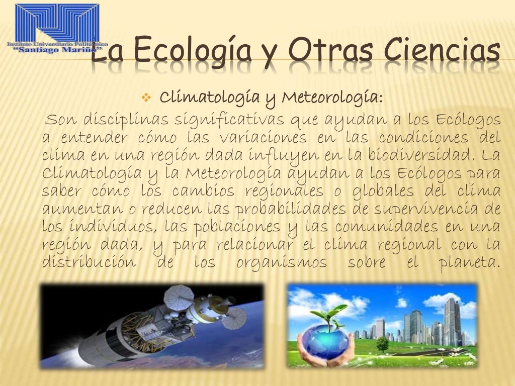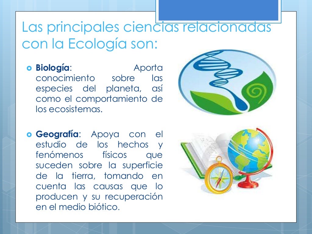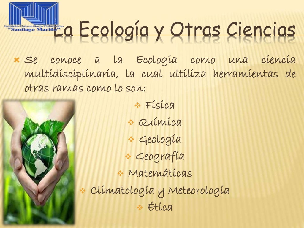 RELACIÓN DE LA ECOLOGÍA CON OTRAS CIENCIAS. 21.03.2013 12:27. La ecología es una ciencia multidisciplinaria que utiliza herramientas de otras ramas de la ciencia, como: La Física se relaciona por todos los procesos bióticos tienen que ver con la transferencia de energía, desde los productores, que aprovechan la energía lumínica para.
