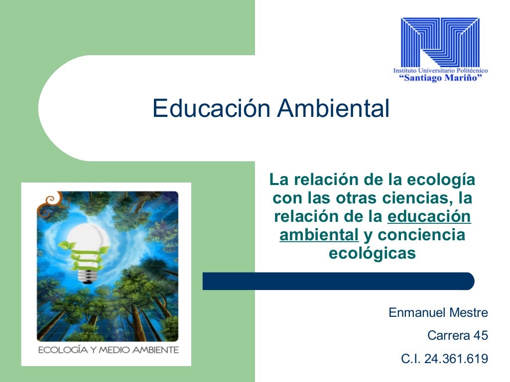 la relación de la ecología con las otras ciencias, la educación ambie…