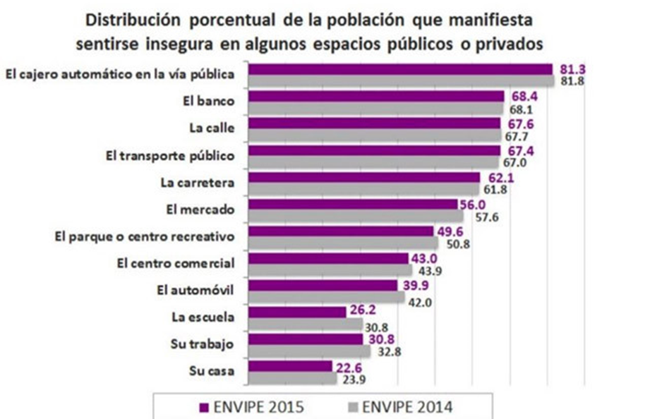 Los delitos más frecuentes y los lugares más inseguros para los mexicanos